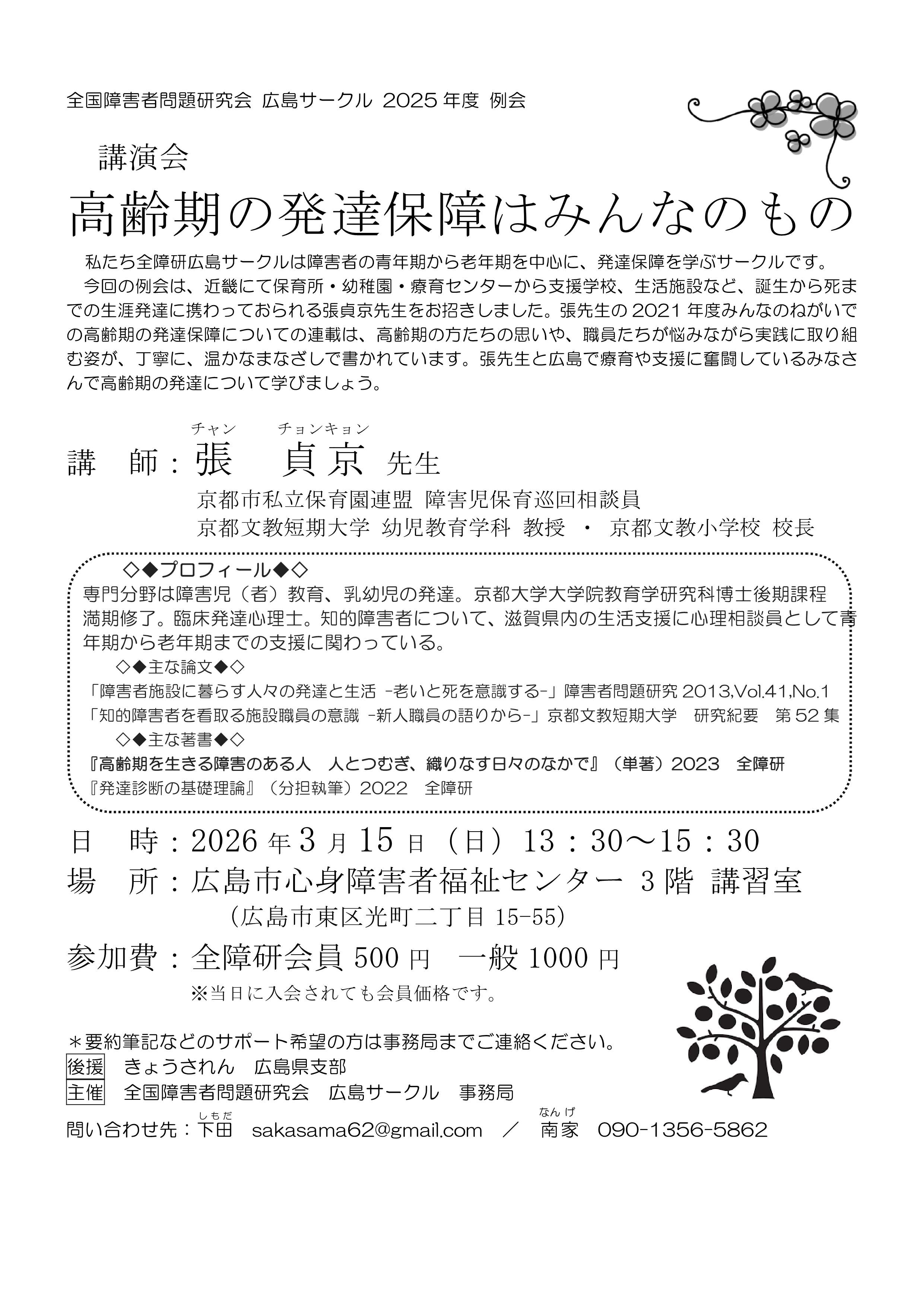 主催・連絡先=NPO法人発達保障研究センター/全国障害者問題研究会