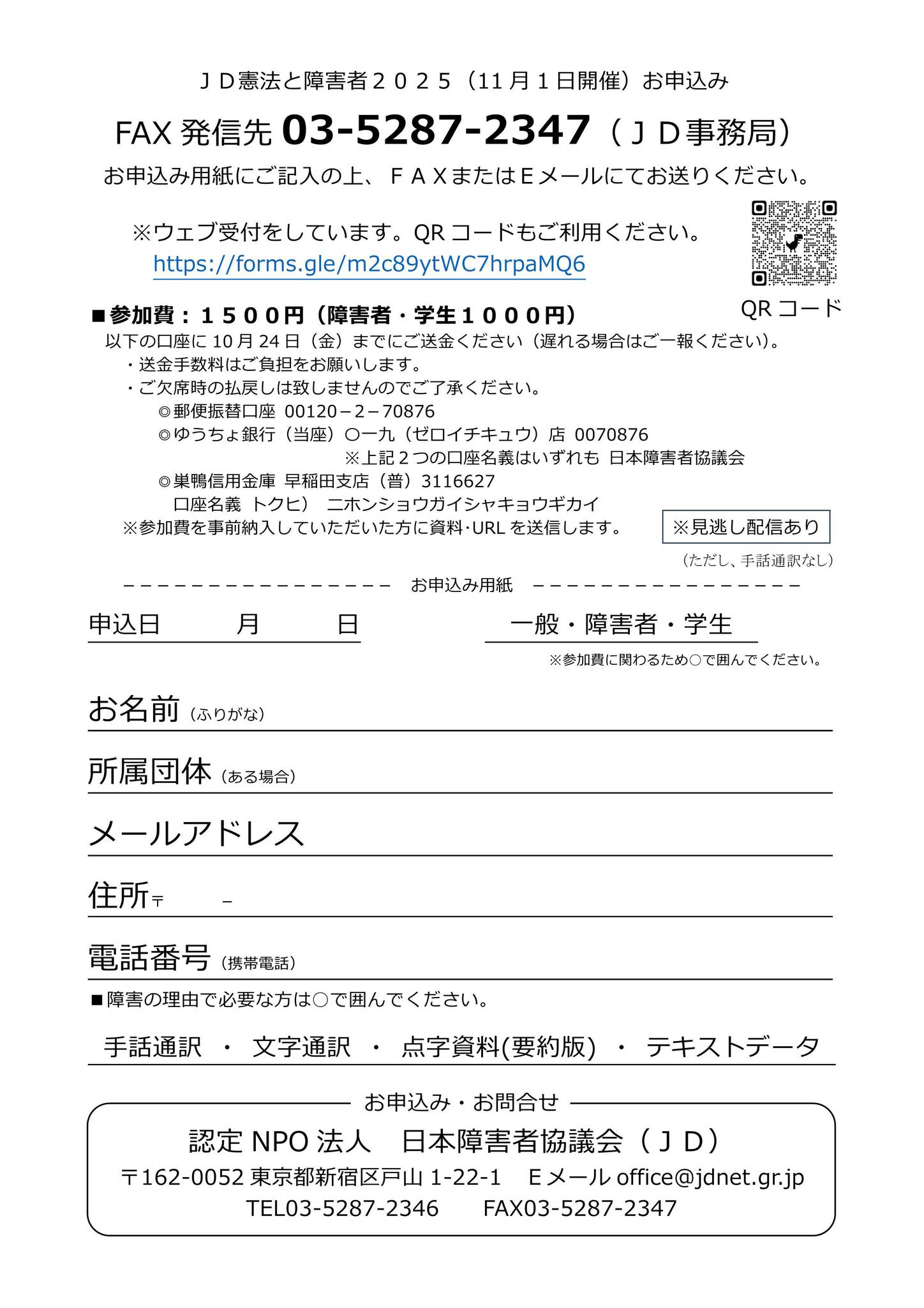 参加申込=日本障害者協議会 office@jdnet.gr.jp