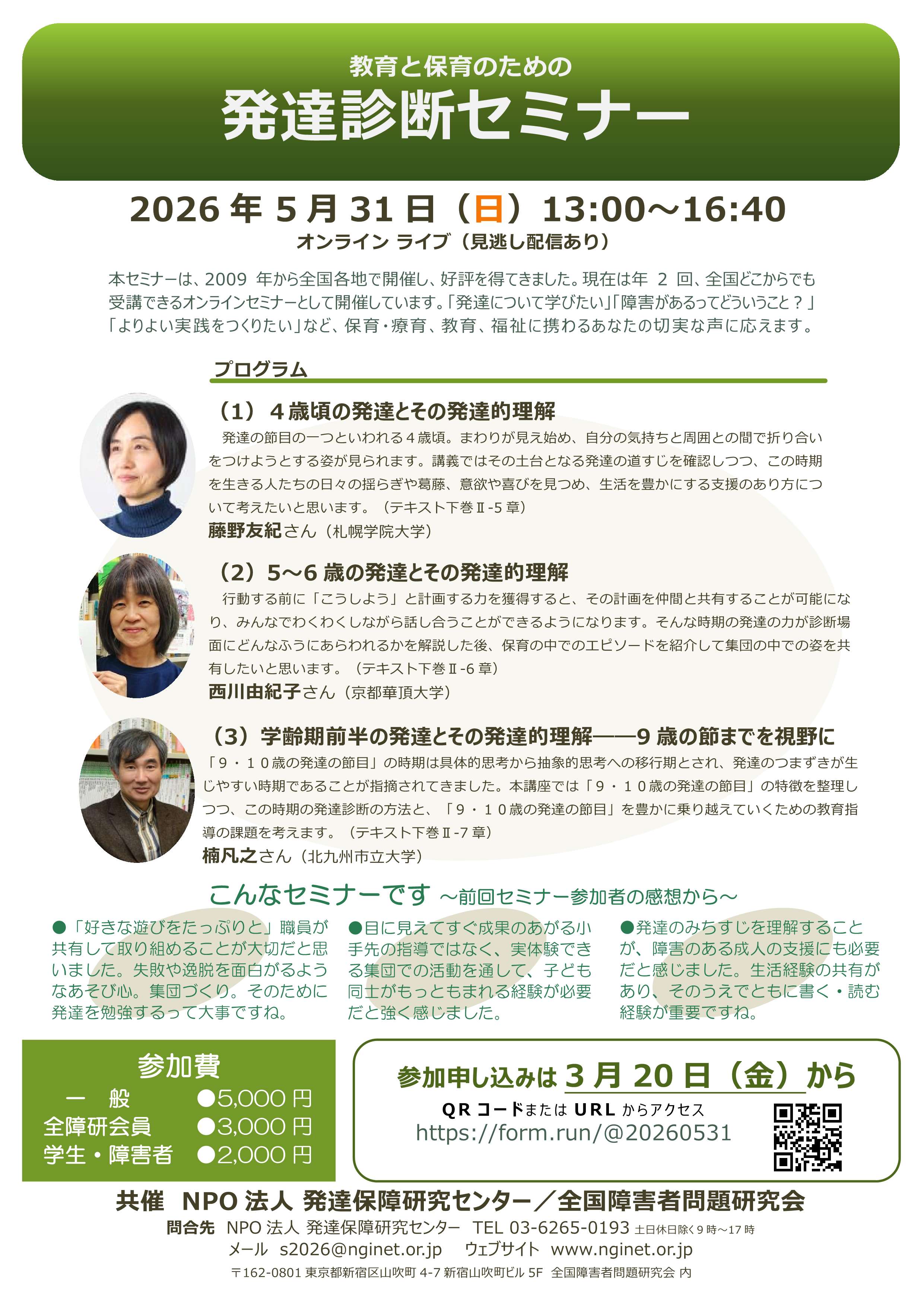 共催=NPO法人発達保障研究センター/全国障害者問題研究会