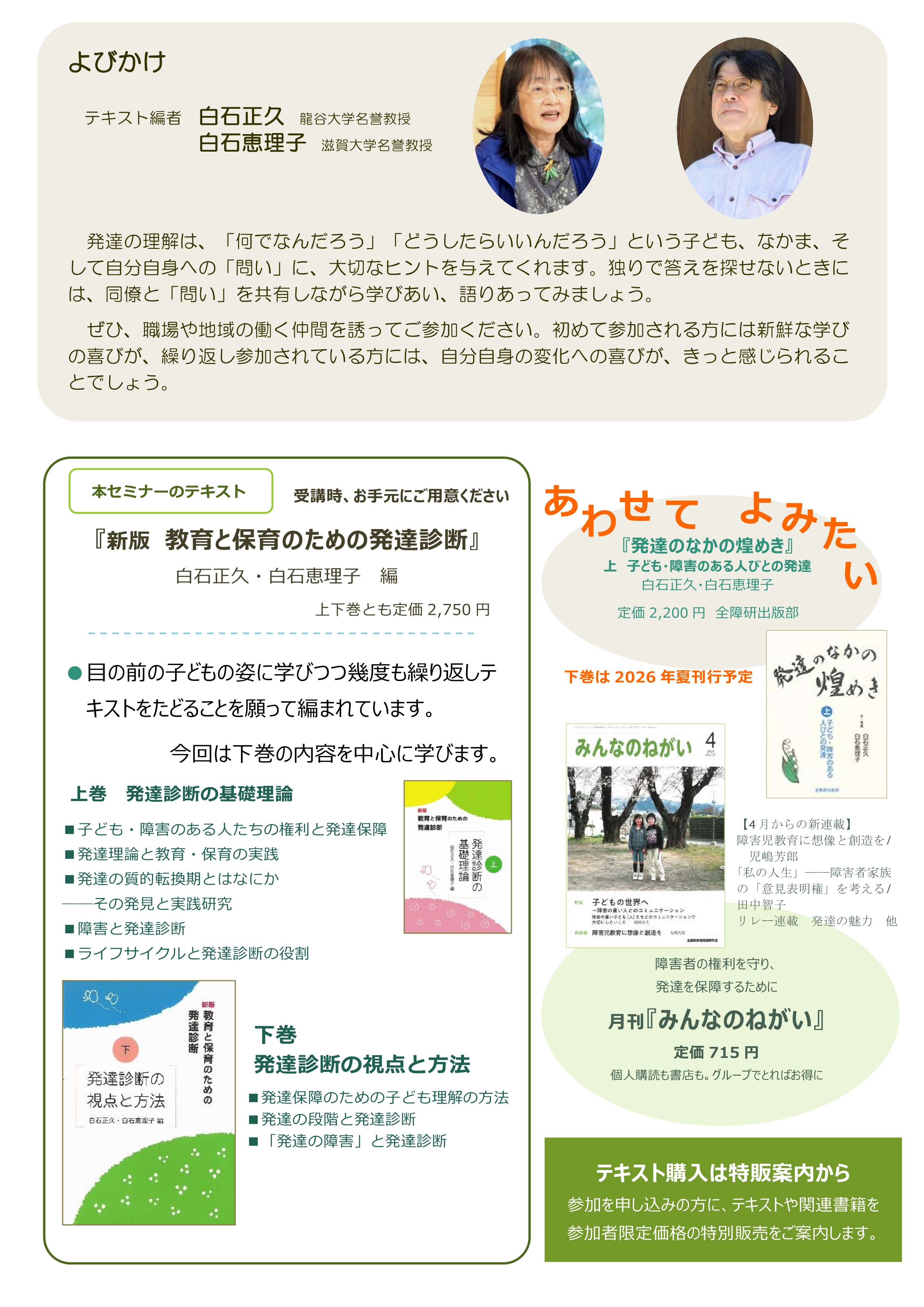 ◆本セミナーのテキストは『新版 教育と保育のための発達診断』上巻と下巻です